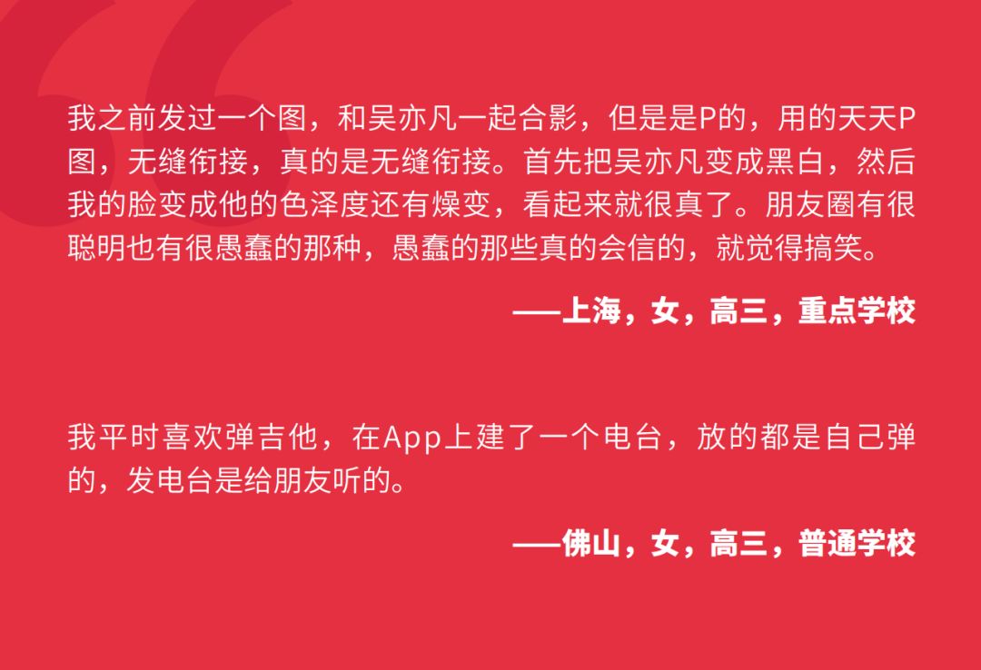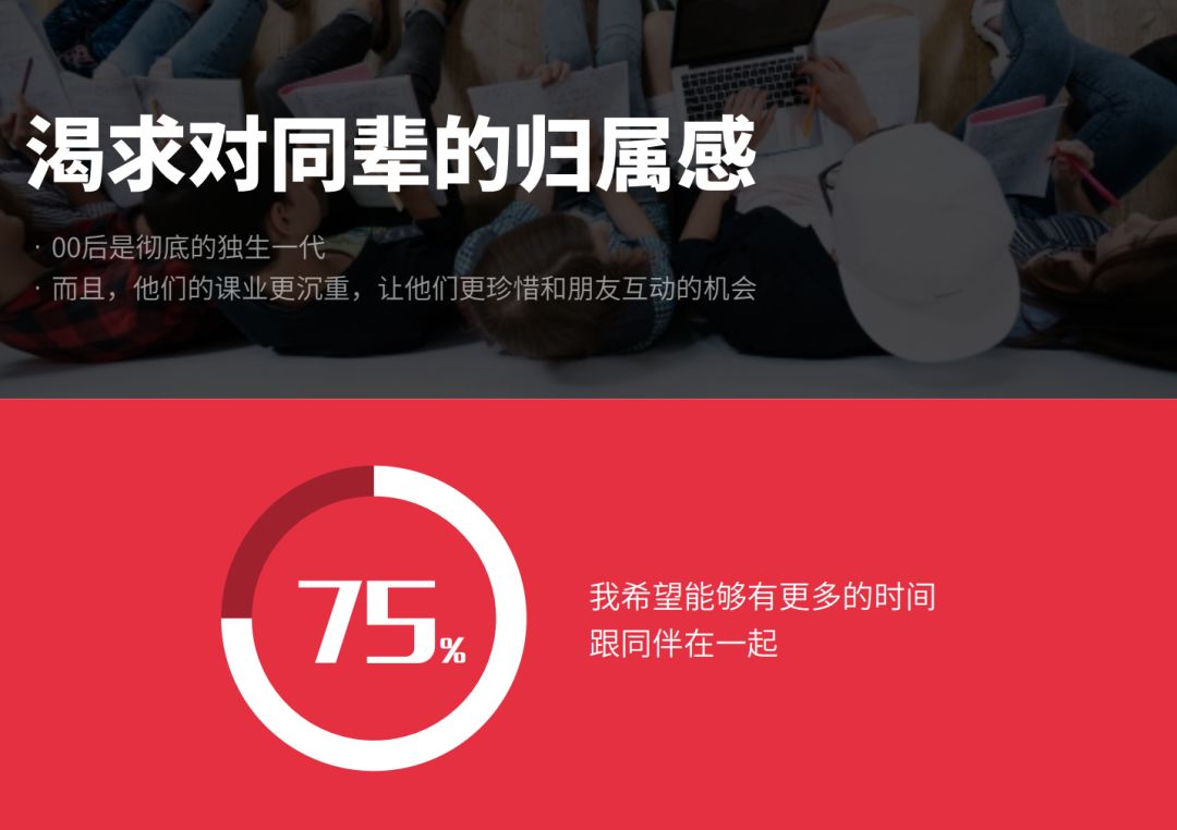00后更渴望被同龄人认同,更愿意花更多时间和朋友在一起。在不同的社交平台上,他们倾向于用不同的人格表达自己,从小懂得如何塑造更加讨人喜欢的形象。