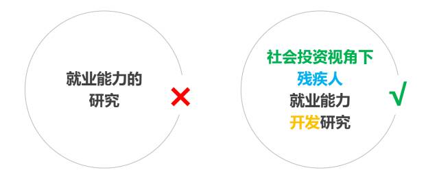 “就业能力的研究”范围太宽,难度太大,限定理论视角(社会投资视角)、研究对象(残疾人)及其他方面(开发)之后,研究问题的范围就更加适中了,不会太过空泛,可操作性也变强了。