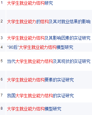 在中国知网中,检索“大学生 AND 就业能力 AND 结构模型",会看到这样的结果: