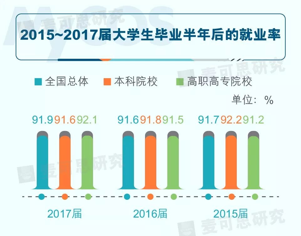注意点:大学毕业生半年后就业率稳定。2017届高职高专就业率首超同届本科。