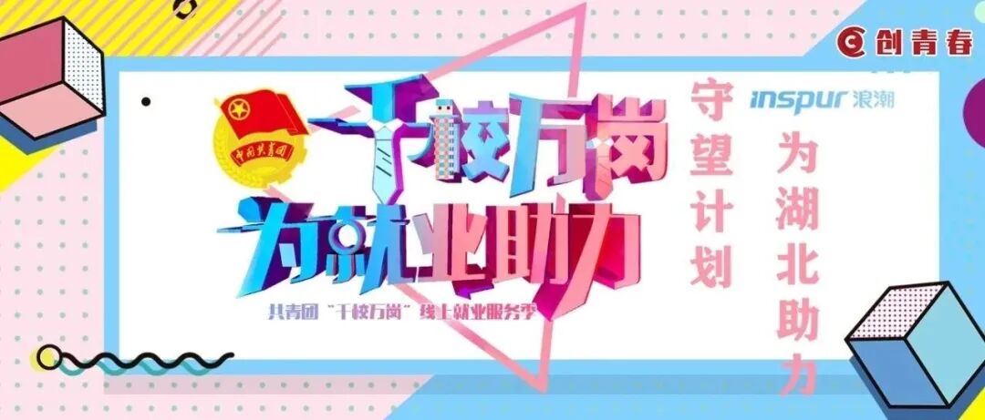 浪潮集团“守望计划”助力共青团“千校万岗”线上就业服务季,为武汉高校、湖北籍同学及一线医护人员直系亲属送上1w+岗位。