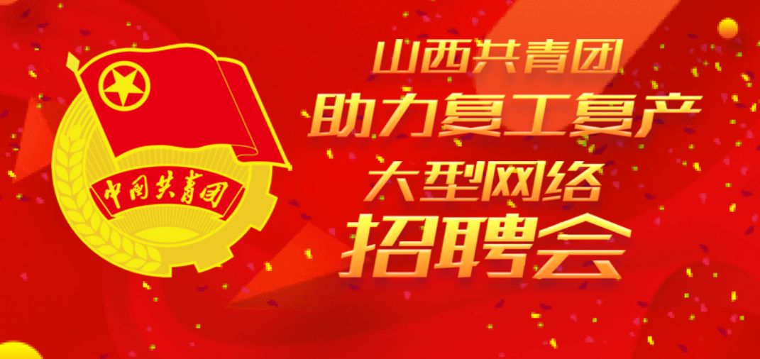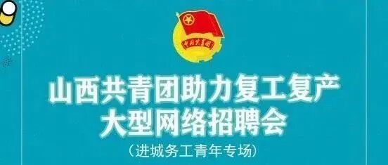 4月1日至4月20日,与20余家企业联合举办山西共青团助力复工复产网络招聘会进城务工青年专场,快来看看吧!
