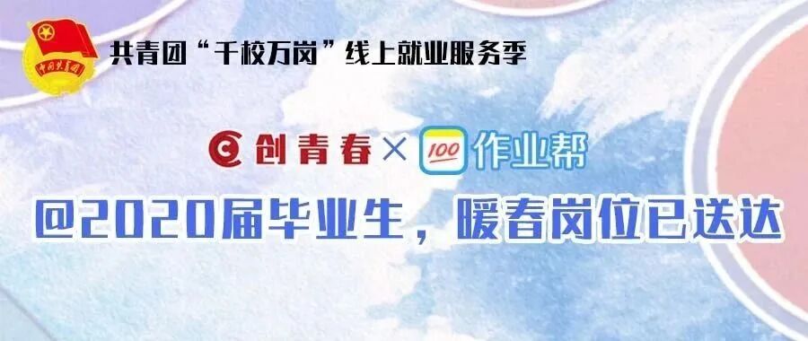 作业帮加入共青团“千校万岗”线上就业服务季活动,为高校毕业生和求职青年送来1w+暖春岗位。