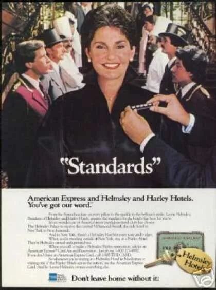 统一的标准是美国酒店曾经非常自豪的一点,例如当时美国运通卡和Helmsley and Harley连锁酒店合作的广告,标语就是“标准”