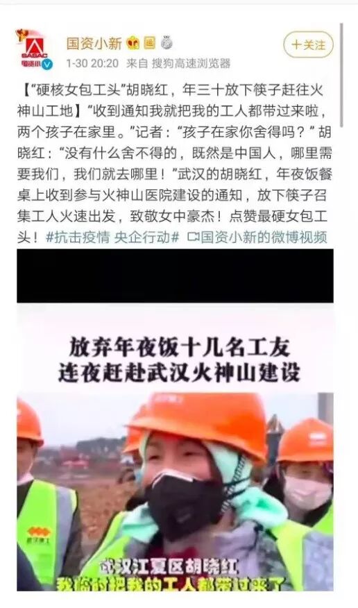 火神山医院创立了10天建成的世界神话,基建狂魔这个名号,再一次响彻世界。火神山工地男女比例已经达到1:1,有太多的女性,一边做着最重的体力劳动,一边展现出最美的笑容。武汉夏江区的包工头胡晓红,吃年夜饭的时候,听到了要急速建成火神山的消息。而彼时,武汉已经封城,人心惶惶,可胡晓红只听进去了3个字:需要人。年夜饭都没吃完的她,当即放下筷子,号召自己所有工人,连夜赶赴火神山参与工地建设。在轰轰隆隆的工地现场,记者了解到她家里只剩下2个孩子,问她舍得吗?“没有什么舍不得!我们有一份力,就发一分光!既然是中国人,哪里需要我们,我们就去哪里!”只有让建设的速度跑赢病毒传播的速度,才可以让医院拔地而起,救更多的人;只有工程顺利完工,才能让大家看到,武汉没有被按下暂停键。此时此刻,她早已忘了自己是妈妈,是妻子,是女儿,她的名字是中国女性!一直觉得侠之大者这个词离我们好远好远,可看到你质朴笑脸的那一刻,我们就读懂了什么是巾帼英雄。有这样7个武汉咖啡师,在武汉封城的第三天,他们有的瞒着家人偷偷聚集,有的绞尽脑汁,从外地返回武汉。他们都是响应武汉咖啡店老板,90后女孩田亚珍的号召回来的。知晓疫情后第一时间,田亚珍想到的不是关店,而是要为那些前线奋战的医护人员,送去一点儿甜。于是,恐惧持续发酵,人人自危的时候,田亚珍带着7个咖啡师两班倒,每天为医院的医护人员免费送500杯咖啡。每一个咖啡杯上,都写着武汉加油,向您致敬,有您真好的字样。疫情刚刚爆发那几天,物资匮乏,什么都跟着涨价,而田亚珍却坚持用最好的咖啡豆,最新鲜的牛奶。按照8块钱一杯的成本折算,她已经损失了4万块钱,并且损失还在增长。边消毒边做咖啡,哪怕浑身都是刺鼻的酒精味,哪怕做咖啡做到手发抖,写祝福语写得腿发麻;可带着香气浓郁,口感醇厚,依然温热的一杯杯咖啡,依然被准时送到多个医院。“医护人员齐刷刷地向我鞠躬时,我瞬间泪目,我们的辛苦,不及他们的十分之一。”田亚珍说,力所能及地贡献一点,有一种高质量的开心,一切都值了。谢谢你,亲爱的姑娘,是你让我们看到了一群咖啡人的坚持,也看到了普通女孩的滚烫热血。看到你,我们知道了,侠义二字,并不只存在于武侠小说里,还真切地在现实中被你们书写。